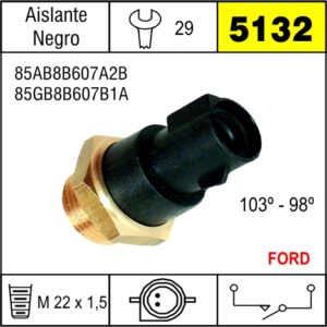 BULBO DE ELECTROVENTILADOR, AISLANTE NEGRO, PARA FORD ESCORT 1.3 / 1.6 Y 1.8 16V / FIESTA 1.1 – 1.3 -1.4 / SIERRA / TAUNUS – 103 A 98 GRADOS