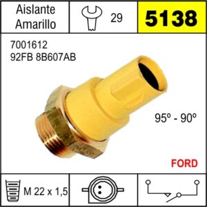 BULBO DE ELECTROVENTILADOR, ASILANTE AMARILLO, PARA FORD ESCORT 1.6 ZETEC ROCAM / 1.6 Y 1.8 16V ZETEC