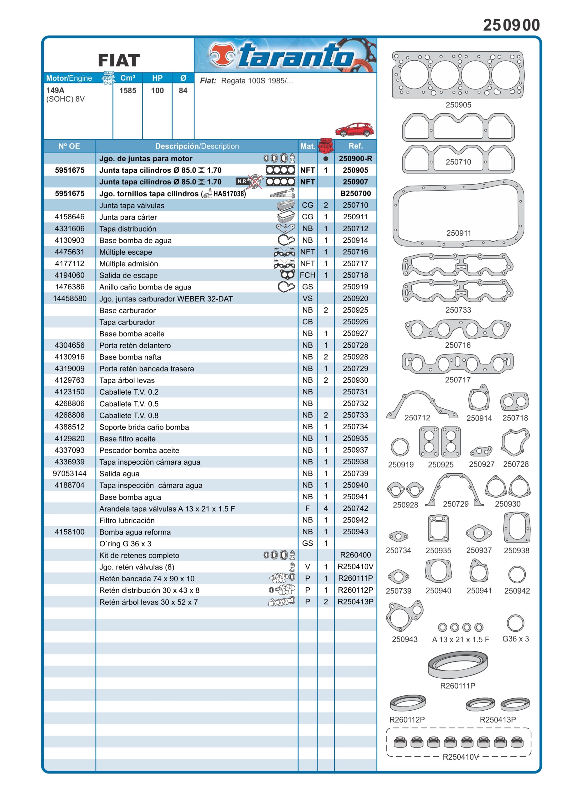 JUEGO DE JUNTAS DE MOTOR (COMPLETO) FIAT REGATTA 100 S