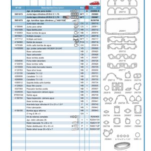 JUEGO DE JUNTAS DE MOTOR SIN JUNTA DE TAPA DE CILINDROS, Y SIN RETENES, PARA FIAT REGATTA 100 S MOTOR 1.6 8V