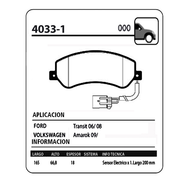 JUEGO DE PASTILLAS DE FRENO DELANTERAS PARA VOLKSWAGEN AMAROK – FORD TRANSIT 2006/2008