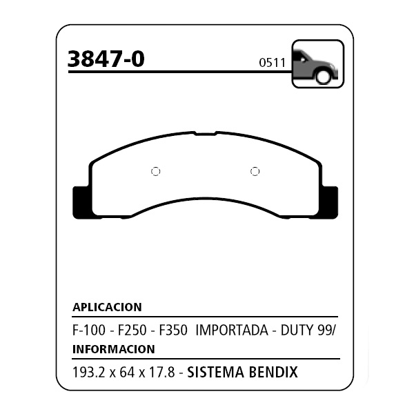 JUEGO DE PASTILLAS DE FRENO DELANTERAS PARA FORD F-100 / F-250 / F-350 / F-1000 1999/2012 – F-4000 2002/…