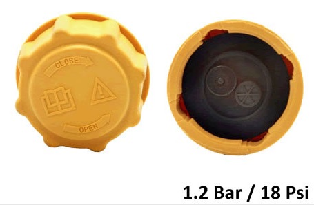 TAPA AMARILLA DE DEPOSITO DE LIQUIDO REFRIGERANTE PARA FORD COURIER / ESCORT / FIESTA 1.4 TDCI – 1.6 ZETEC ROCAM – 1.8 D / FOCUS 1.6 – 1.8 16V – 1.8 TDI / TDCI – 2.0 16V ZETEC / KA 1.0 – 1.3 – 1.6 / MONDEO TODOS – CHEVROLET AVEO 1.6 16V / CRUZE 1.8 – 2.0 / SPARK 1.0 – 1.2 – DAEWOO CIELO / LANOS / MATIZ / NUBIRA / TICO / APPLAUSE / FEROZA – 1.2 BAR –